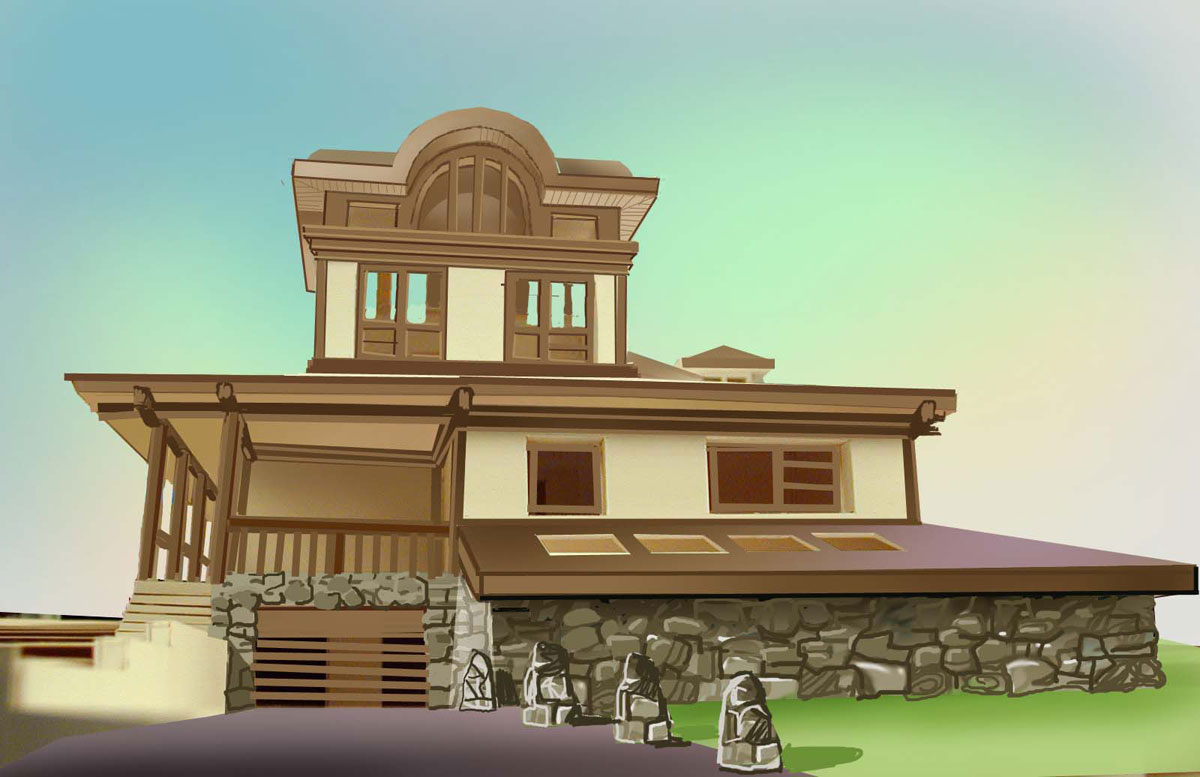 Дом на склоне. Главный фасад