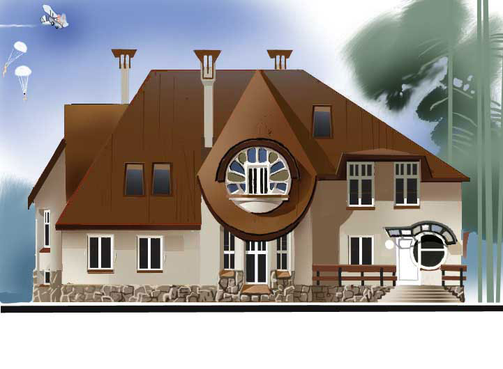 Проект коттеджа "Круги". Эскиз фасада. Вариант 1