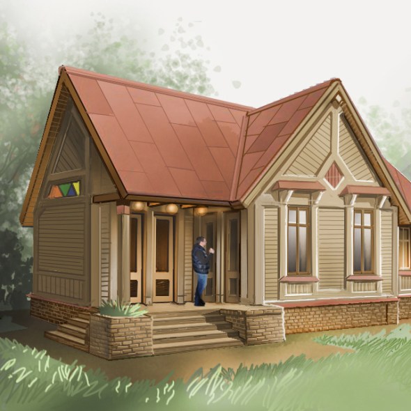 Дом в немецком стиле. Эскиз проекта коттеджа