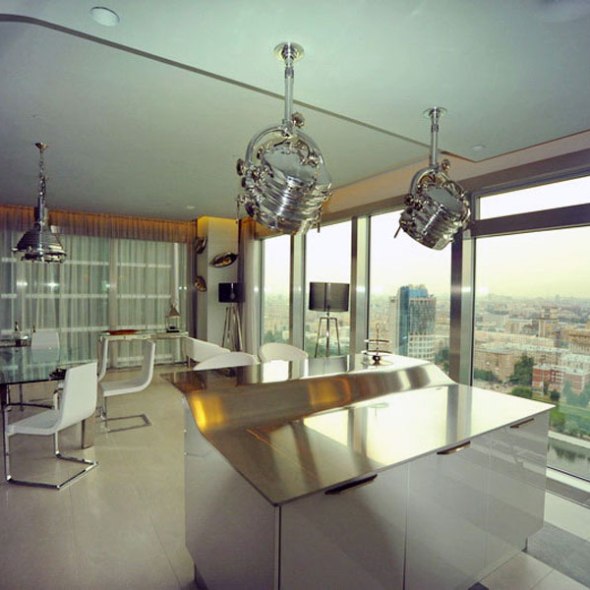 Дизайн интерьера квартиры в стиле контемпорари. Кухня-столовая-гостиная